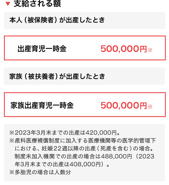 出産育児一時金(被扶養者の場合は「家族出産育児一時金」)