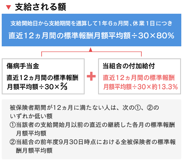 当組合では傷病手当金に、独自の給付(付加給付)を上積みしています。